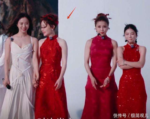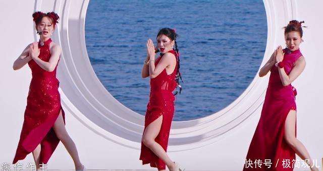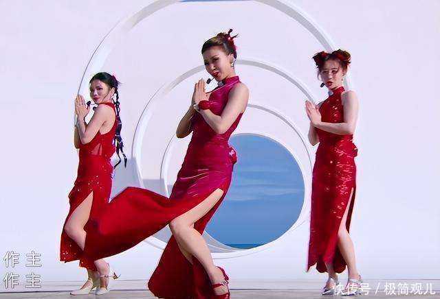 同样是队友,有的因为不用分开而激动相拥,有的却和队友离得远远的,反而靠近竞争队伍,这场景可太尴尬了,到底谁更尴尬自不必说。再看看陈德容这组,整个表演中,只有一个人老是慢半拍,动作也不到位。三个人穿着红色裙子确实很亮丽,王蓉舞蹈动作漂亮又有力量,黄英也给人惊喜,唯独陈德容,不该出声的时候就乱唱,动作也不行。暂停的时候,黄英和王蓉动作齐整,从表情到舞蹈幅度,裙摆飘动的样子都很一致,就像一个人似的,而陈德容仿佛是个“捣蛋鬼”。
